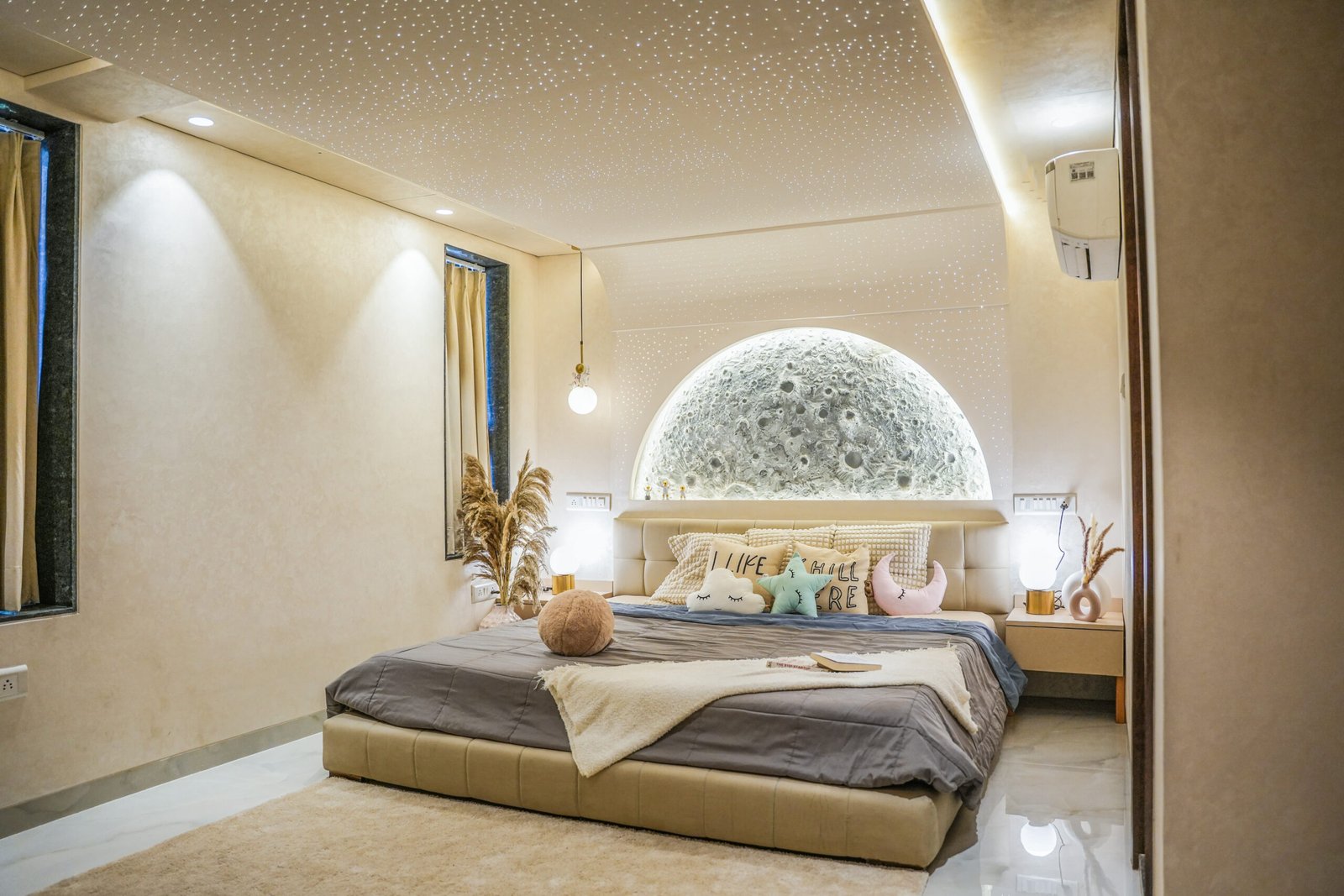 Sleep under the stars in a cozy, celestial space with glowing moons, stars, and peaceful vibes. Perfect for dreamers and romantics